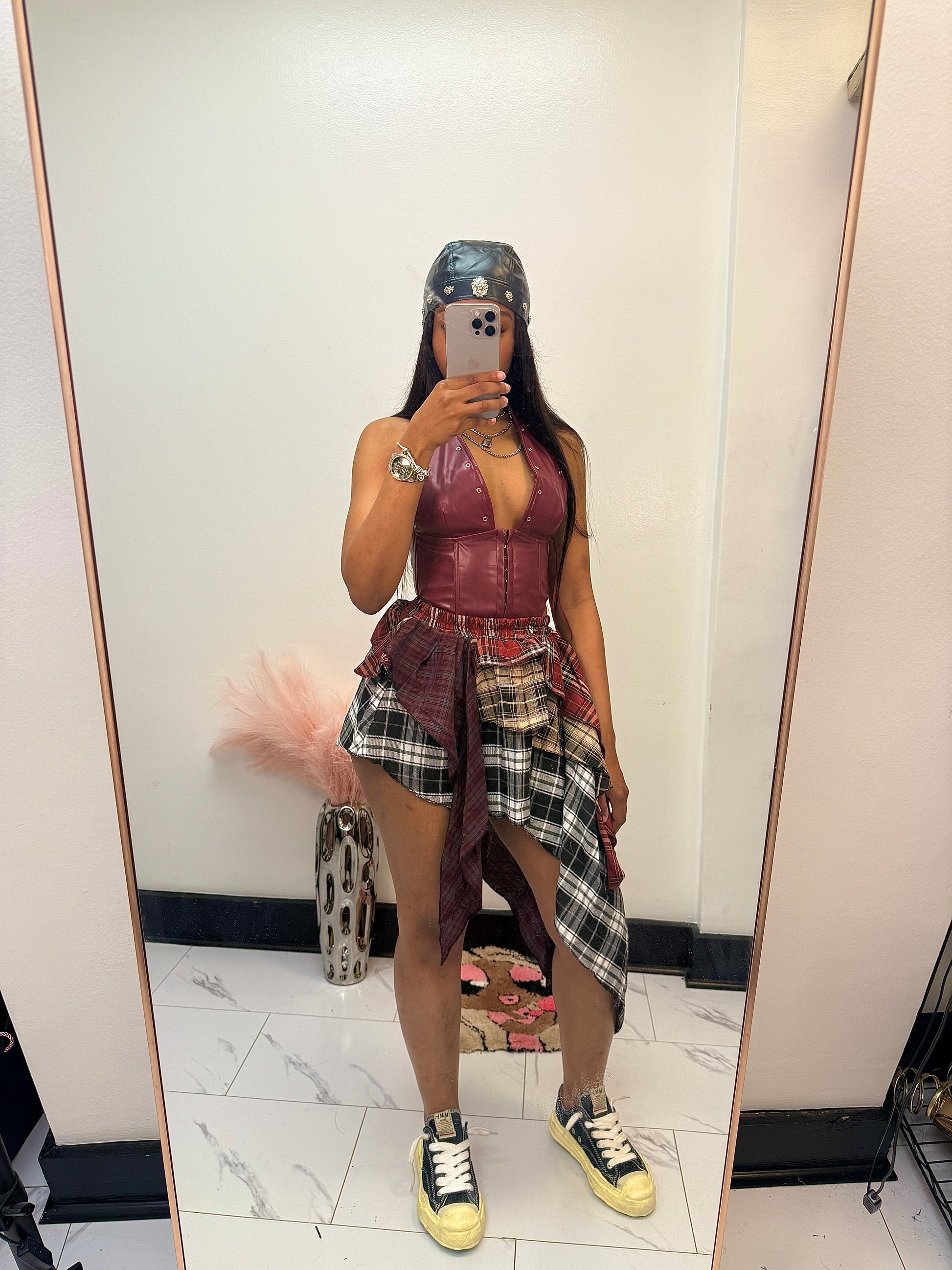 This trendy top runs true to size had no stretch, our model is wearing a small