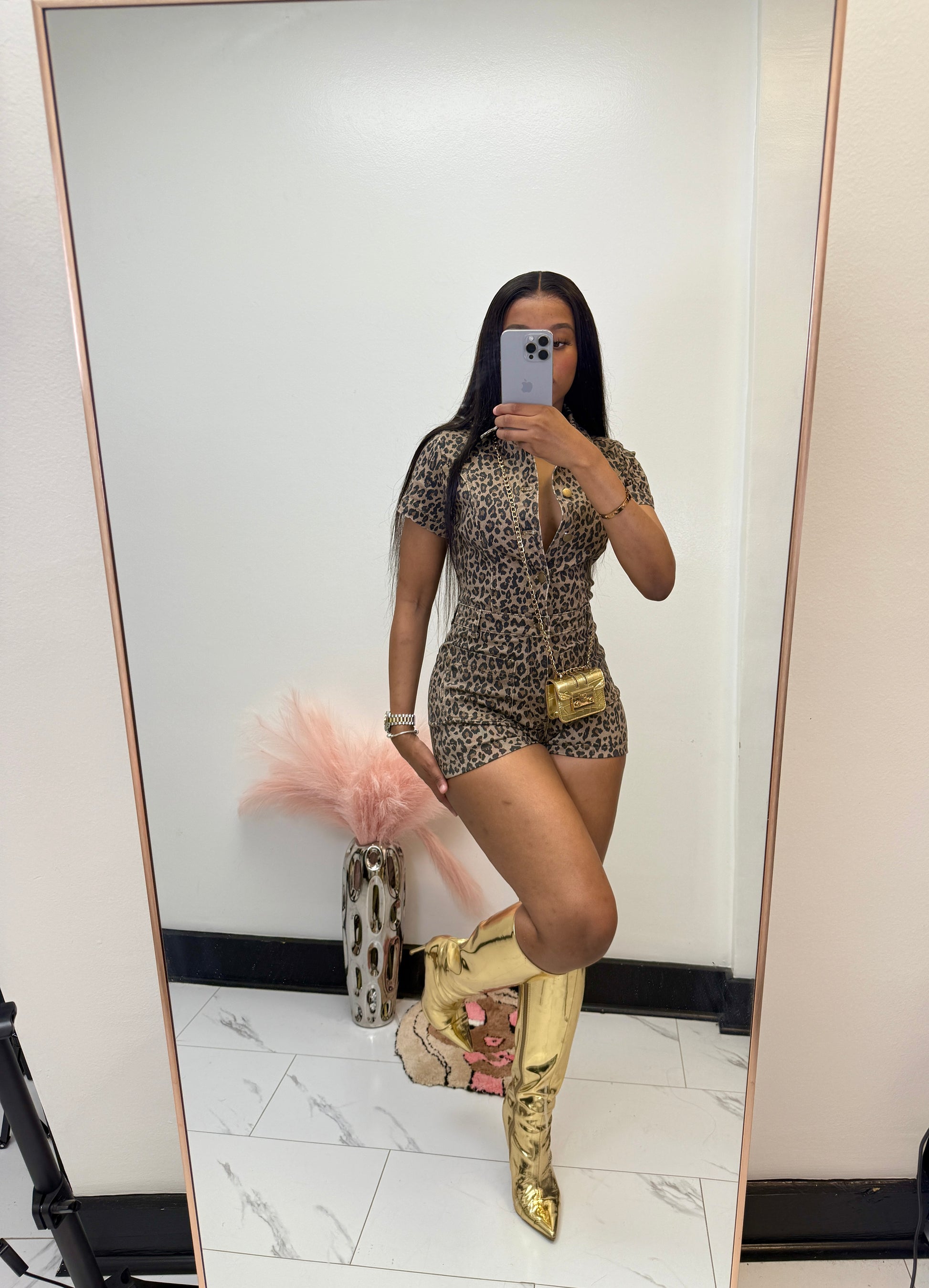 This is a custom item! Runs true to size, has stretch, denim material. Model is wearing a Small.